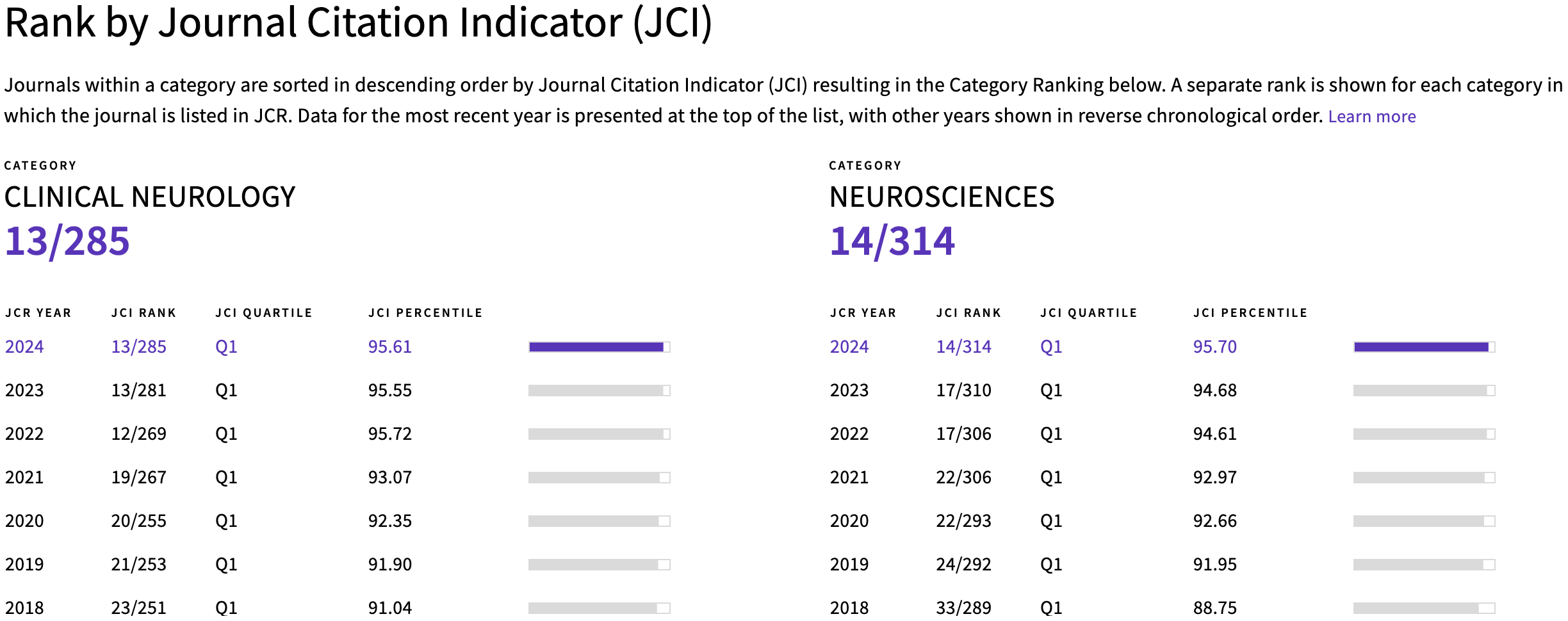 根据JCI分数,该刊排名也稳居Q1,而且排名一直在往前靠。
